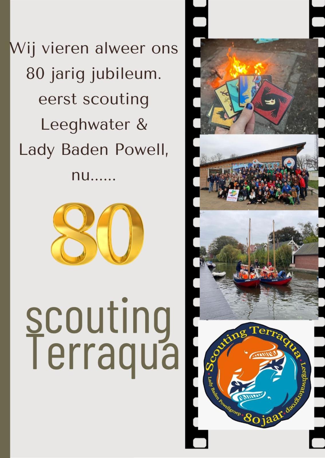 Wij vieren ons 80 jarig jubileum. Leeghwatergroep, Lady Baden Powell groep en nu Scouting Terraqua.