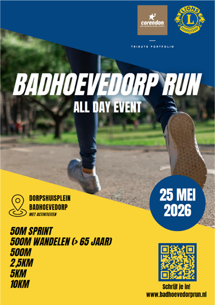 Op maandag 25 mei (2e Pinksterdag) organiseert de Lions Club Badhoevedorp de eerste Badhoevedorp Run.
